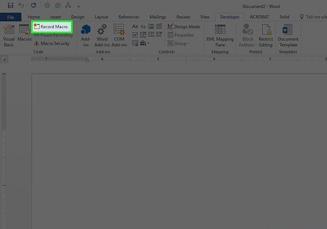 Open a Microsoft Office program. Macros can be created for most Office 365 programs, so open the program in which you want to create a macro. If you want to record a macro, open Word or Excel. If you want to program a macro using VBA, open Word, Excel, PowerPoint, Outlook (Windows only), or Publisher (Windows only). You cannot add macros to Access or OneNote.