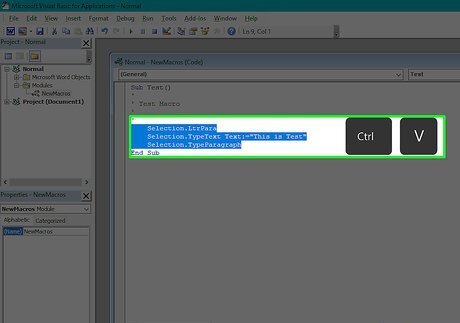 Enter your macro's code. Once the VBA window opens, type in the code for your macro. If you copied a macro's code, paste it into the VBA window.