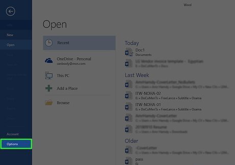 Click Options. You'll find this on the left side of the window. On a Mac, you'll click Preferences... in the drop-down menu.