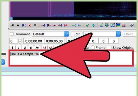 Type in the text. Under the audio waveform, there is a text box. Type the desired text in this box.