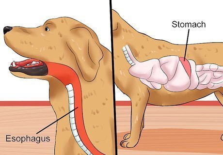 Understand the difference between vomiting and regurgitating. Some cases that are thought to be vomiting are actually cases of regurgitation. Vomiting is the ejection of food from the stomach. Generally there are some “warning” signs before vomiting, such as licking the lips, salivation or acting uncomfortable. With regurgitation, food is ejected from the esophagus generally without force and without warning. It is important to recognize the differences between the two, as they have different causes. For example, regurgitation is caused by disorders with the esophagus such as: Esophagus weakness due to diseases such as myasthenia gravis and Addison’s disease Megaesophagus (non-reversible enlargement of the esophagus) Foreign body stuck in the esophagus Inflammation especially that caused by frequent vomiting Stricture or narrowing of the esophagus (this generally happens after injury to the esophagus)