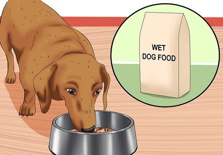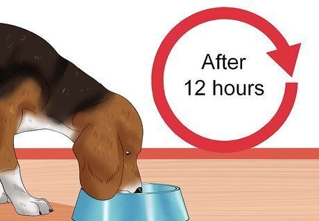 Feed the dog a bland diet after 12 hours of fasting. The treatment for dogs with upset stomachs is to withhold all food for 12 hours (despite the begging) and give them small amounts of water every 2-3 hours during this time. If they are able to keep the water down after 12 hours of food withholding, you can offer them two teaspoons (for a small dog), two tablespoons (for a medium sized dog), or ¼ cup (for a large dog) of a bland diet. A bland diet consists of carbohydrates and proteins that a dog can easily digest. The most common bland diet to give a dog is a mixture of cooked white rice and boiled chicken, without bones or skin. This meal gives your dog's digestive system a break because it is very easy to digest. If the dog can keep the first small amounts down, offer the diet in these same amounts every 3 - 4 hours for the first day. Then mix it with the dog's regular food half and half the next day. By day three, the dog should be back to its regular food and feeding amount.