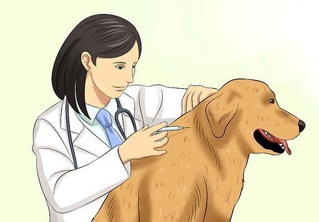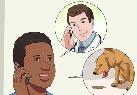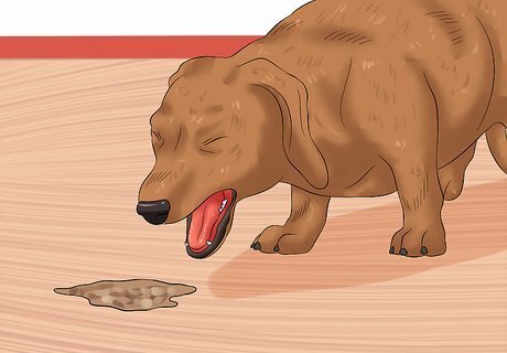 Treat the dog at home. It is okay to watch your dog closely at home if your dog is still happy and begging for food after it vomits. If it has other symptoms, such as lethargy or spasm, you should take it to the vet immediately. Keep your dog happy but it is also a good idea to protect your home from additional messes. Place the dog in a room with hard floors, in other words no carpet, so that any future vomiting can be easily cleaned up. Keep it company, however, and try to soothe it with lots of love and affection.