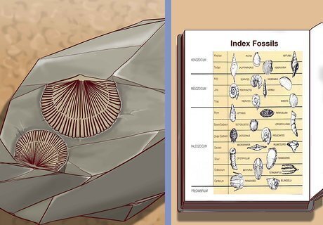 Use index fossils to estimate the date of your fossil. Index fossils are fossils that are only found during particular time periods. If a fossil is found next to an index fossil, it can be assumed that the fossil is a similar age. For example, brachiopod fossils are thought to be 410-420 million years old, meaning that if you found a fossil beside a brachiopod fossil it would likely be a similar age. If a fossil was found between an index fossil that is 410-420 million years old and an index fossil that is 415-425 million years old, you could deduct that the fossil would likely be 415-420 million years old as this is the overlapping range.