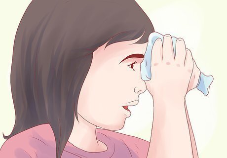Help your child lean forward. Whether your toddler is in a chair or in your lap, he needs to lean forward a bit so that he is less likely to swallow blood. If your toddler is sitting in a chair, place a hand on his back and gently push forward. If your toddler is sitting in your lap, lean forward gently, pushing him forward.