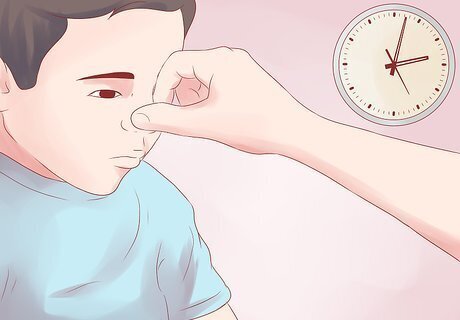 Check periodically for bleeding. After pinching the nose closed for ten minutes, check to see if it is still bleeding. If so, continue to pinch the nose for ten minutes more.
