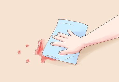 Wipe all visible blood away. Using a handkerchief, towel, or other soft cloth, wipe away any blood that is visible.