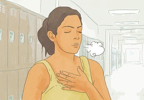Remain calm and at peace. Bullies are often looking for an emotional response from their victims, so it helps if you avoid bringing emotion when and if you do respond to them. You can protect your feelings from hurtful insults by ignoring the unkindness or by using positive self-talk or by walking away from the situation. Breathe deeply. Deep breathing can help you maintain your cool in tense situations. Breathe deeply through your nose and exhale through your mouth. Another way to remain calm is to reflect back on a time when you felt happy or at peace. It can be helpful to think back on a recent vacation or moment with friends to recenter yourself back to happiness.