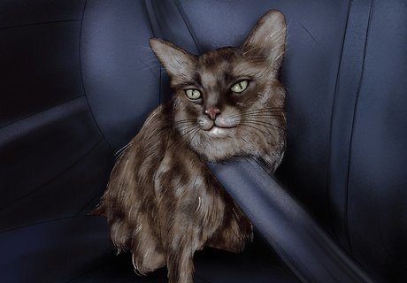Cover your seats. The inconvenience of dealing with a carsick cat is that their throw up may stain or ruin your car seats. To avoid this you should cover your seats to protect them from stains. Ultimately, there are a wide variety of seat covers you can use. Consider using: Old towels or sheets Generic seat covers Seat covers made for your make and model vehicle