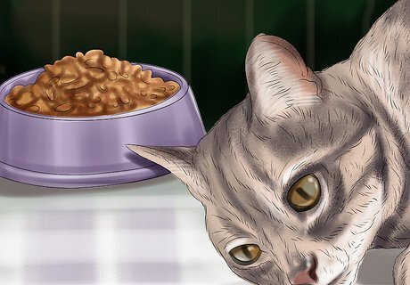 Watch your cat's feeding habits. If you notice your cat doesn't want to eat, or stops shortly after beginning to eat, they might be reacting to pain in their teeth from teeth resorption. If notice this, check for other signs. Pay attention to how your cat is eating. If they are only eating from one side of their mouth, swallowing without chewing, or dropping food as they eat, there may be a dental issue like tooth resorption.