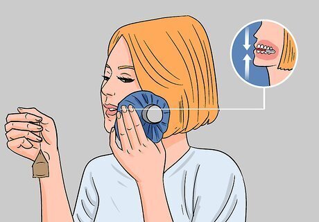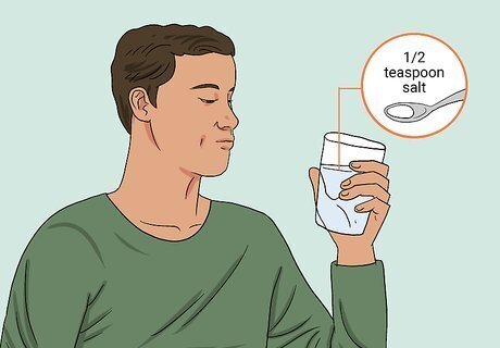 Rinse your mouth with warm salt water to soothe pain and prevent infections. Pour yourself a small glass of warm water and mix in ½ teaspoon (2.8 g) of salt. Take a sip of the saltwater and swig it around in your mouth. Spit the water out into the sink and repeat as needed. This will help any damaged tissue heal. Do not swallow any salt water. Aside from the fact that it isn’t very tasty, salt water isn’t particularly good for your body.