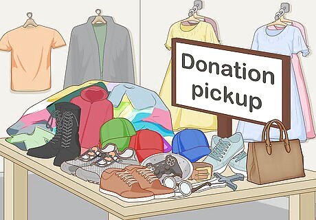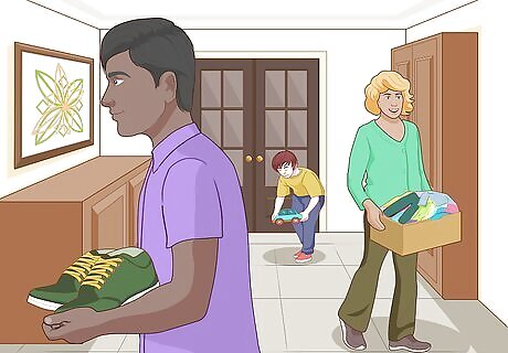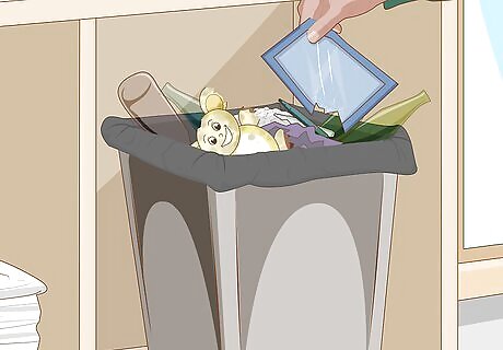 Part with old clothes and toys. Rummage through the assortment of outgrown items you have lying around and see what you’d be willing to throw out. Sort the mess into individual piles based on what can be given away to friends and neighbors, what can be put up for consignment and what should be carted off with the week’s trash. Consider holding a yard sale to offload some of your finds and make a little extra money in the process. Donate items that are in good condition rather than throwing them out. What seems like waste to you might be just what someone else needs.