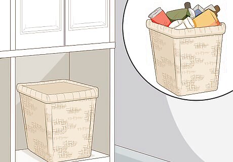 Acquire some spacious storage containers. For most homes, a few inconspicuous baskets or bins will be enough to tuck away stray items. Make sure they’re big enough to hold everything you need them to with no overflow. These containers can then be tucked away in a closet beneath another piece of furniture to make them less noticeable. For a more decorative approach, look for attractive pieces like wicker baskets and ornamental wooden chests or trunks. An old cabinet or dresser can be converted into an all-purpose storage solution.