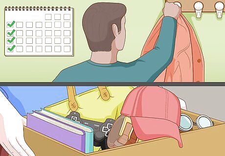 Throw out broken, dirty or unused items. Anything that no longer works the way it’s supposed to should either be repaired or disposed of for good. The same goes for clothing and gear that’s stained or otherwise past its prime. Obsolete electronics and work boots with the soles peeling off probably aren’t worth keeping around. Don’t be tempted to hang on to an item thinking it might have some value in the future. If you haven’t used it in months, you don’t need it. Gather up things you intend to hang on to and put them away somewhere else, like a junk drawer or a labeled box in the basement.