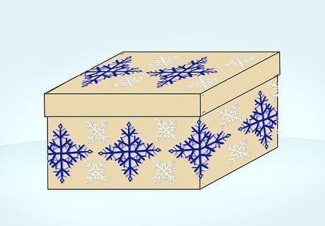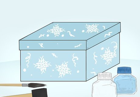 Consider painting your gift box. Take the lid off first, and then paint each piece separately. You can use acrylic paint and apply it with a foam brush or a paint brush. You can also use spray paint. If you want to add more designs, wait for the paint to dry first, then paint on smaller designs using a thin paint brush. Here are some ideas: For a winter themed box, paint the box a light blue first. Then, paint delicate snowflakes and snow swirls using white and silver paint. For a birthday themed box, choose a cheerful color, such as yellow, for the base. Then, paint some birthday-related symbols, such as confetti, balloons, and cakes. Try to use bold colors, such as blue, red, and green.