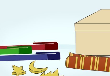 Add some simple designs onto the box using stamps, markers, or wrapping paper. This section will give you a few, simple ideas on how to decorate your box. You don't have to use all of them. You can choose one or two that appeal to you the most or none at all.