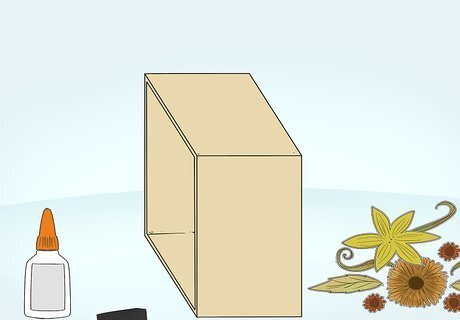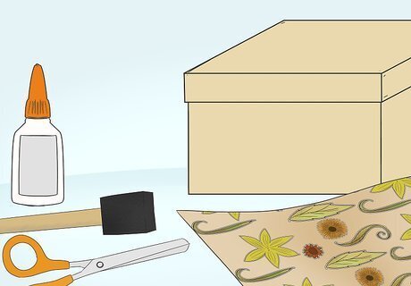 Gather your supplies. Decoupage is a great way to create a unique, layered look. It is ideal for those who want a vintage or shabby-chic look to their box. Here's what you'll need: Plain gift box Solid colored or patterned paper Scissors Mod Podge or decoupage glue Foam brush
