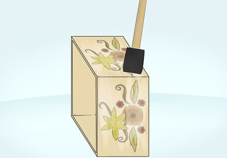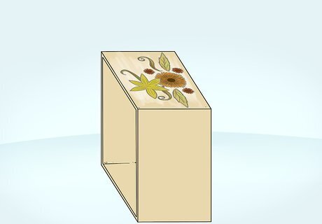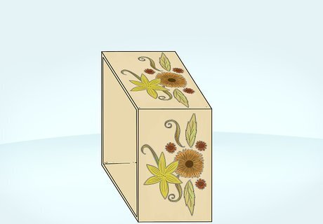 Let the glue dry before working on another side of the box. Once the glue dries, flip or rotate the box and continue decoupaging pieces of paper onto it.