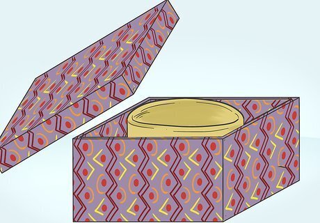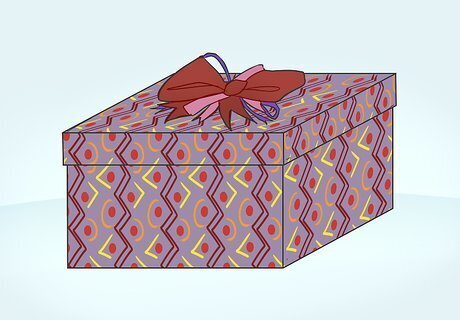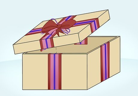 Place the gift inside the box, and cover it with the lid. If you want, you can tuck some matching tissue paper inside the box. This will help keep the gift inside safe. It may also make the box more fun to unwrap.