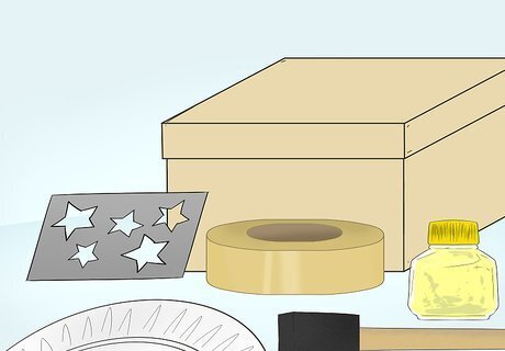 Gather your supplies. Stenciling a gift box is a great way to add your personal, unique touch. Here's a list of what you will need: Plain gift box Stencils Painter's tape or masking tape (optional) Acrylic or tempera paint Foam brush or stencil brush Paint palette or paper plate Paper weights, cups, stones, etc