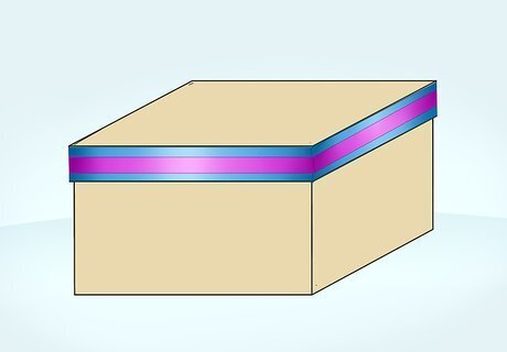 Add a stripe of color with wrapping paper. Place your gift inside the box, and put the lid on. Cut a long strip of wrapping paper that is one third the width of your box; it needs to be long enough to wrap around your box. Place the strip on top of your box, and wrap it over the sides. Secure the ends of the wrapping paper strip to the bottom of the box with a piece of clear tape. Consider wrapping a piece of thin ribbon or twine around the box, and tying it in a bow on top. Make sure that the ribbon or twine is centered over the paper strip. For a layered look, repeat the process, but with a slightly narrower piece of wrapping paper. Try to use a contrasting color or pattern for a striking look.
