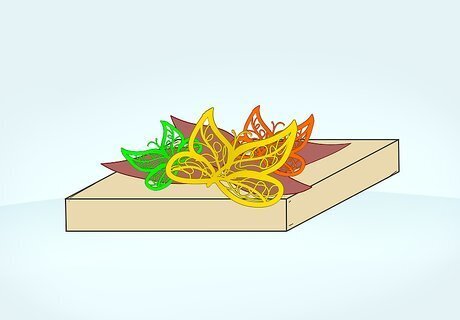Press the paper down onto the glue. You can place the shapes down individually, or overlap them to create new designs. For example, you can paste a flower shape down onto some leaf shapes. If you are overlapping shapes, be sure to coat the bottom shape with Mod Podge so that the top shape will stick.