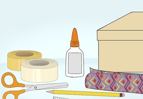Gather your supplies. If you have a plain cardboard box with a lid, you can cover each piece with colorful paper. This way, the person just has to untie the ribbon and open the gift. Here's a list of what you'll need: Gift box with a lid Wrapping paper Pencil and ruler Scissors Clear, double-sided tape Clear, regular tape