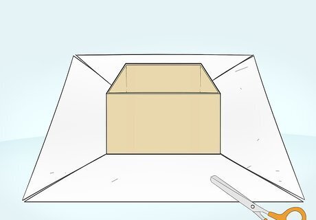 Draw a line going from each corner of the paper to each corner of the box. Use a ruler to help you make the lines straight. These will be your cutting guidelines.