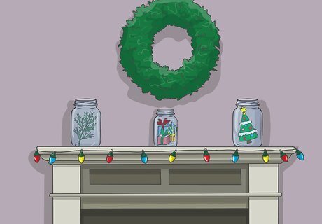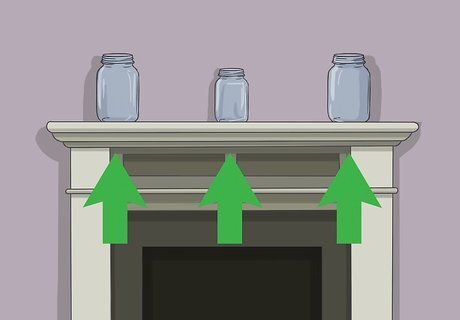 Arrange your jars on the mantel. After the jars are dry, you can place them on your mantel. You might organize them starting with large jars on the outside, with jars decreasing in size toward the middle of the mantel. However you choose to arrange the jars is up to you.