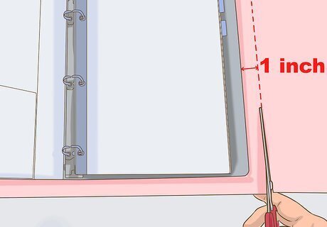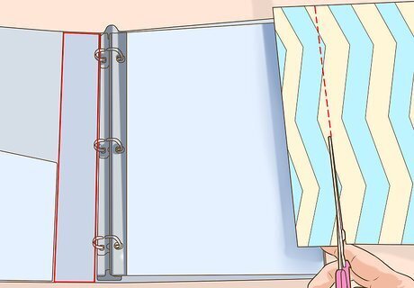 Cut a center strip if needed. Depending upon where the rings are positioned in your binder, one side of the binder may be wider when it's open and flat (usually the left side). If you want a clean, finished look when you open your binder, you may want the center strip to be covered with paper or fabric, too. Measure the length and width of this center strip, and then cut a piece of your wrapping material to fit. This piece should fit exactly, with no overhang.