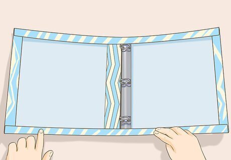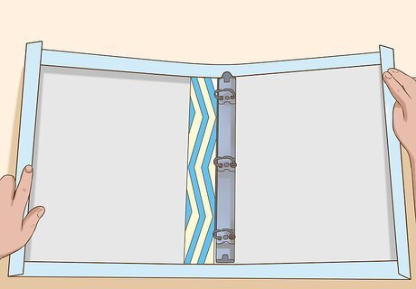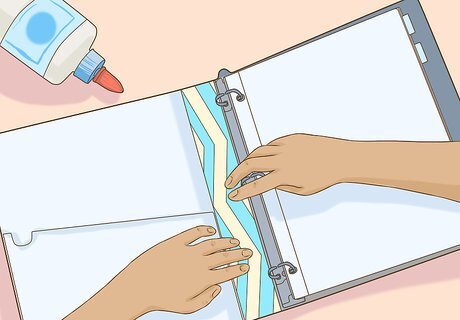 Apply the center strip. If you have cut a center strip of paper or fabric, apply it to the inside of your binder, with either tape or glue. If you're using fabric, consider spraying the back of the fabric strip with spray adhesive, and then firmly press the fabric in place.