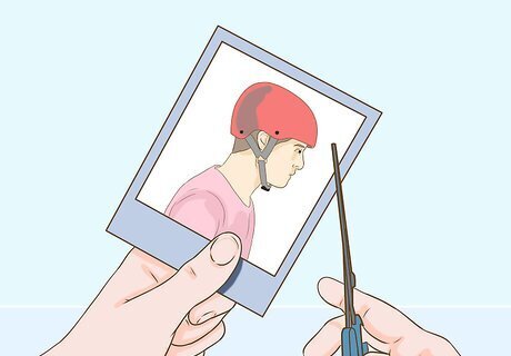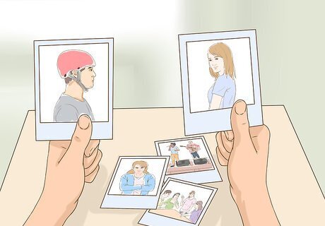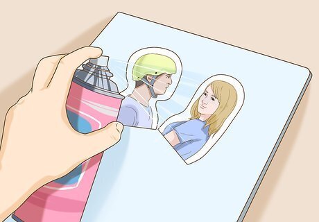 Crop the images. Cut each picture you're using into a size and shape that will allow everything to fit together more or less like a jigsaw. Your pictures can overlap somewhat — this is perfectly fine (and if you don't want any of the surface underneath to show through, it's something you should shoot for.) Set your pictures down where you want them to go, but don't stick them down yet. Feel free to try different layouts and designs. Once you start securing your pictures, it will be trickier to make any adjustments.