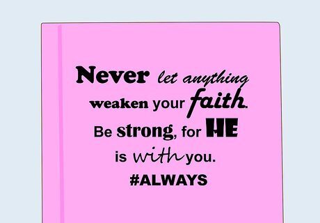 Add your favorite quotes. Give your binder a dash of humor or inspiration by recreating your favorite quotes on the cover. For instance, try typing your favorite speech excerpts, song lyrics, or poems on the computer. Be sure to pick an attractive font, print out the quote, and then affix it to your binder with clear packing tape. You can also try your hand at calligraphy.
