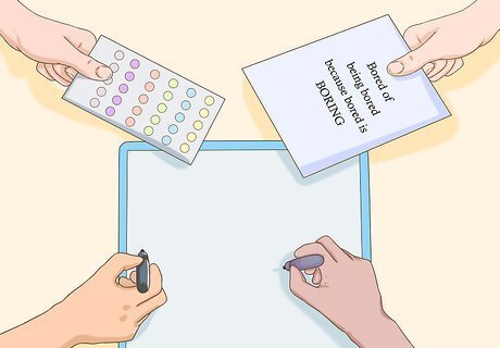Make a collaborative cover with your friends. You don't necessarily have to make your binder cover all by yourself. One fun idea is to give your binder a plain white cover and have each of your friends add something different to it (like a doodle, sticker, funny saying, etc.) This way, when you get your binder back, you'll have something amusing on it to remind you of each friend! Plus, your binder cover will become a cherished keepsake that you'll enjoy looking at years down the road.