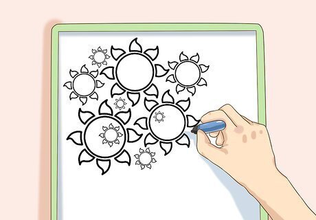 Draw doodles on your wrapped binder. Binders offer great opportunities to express yourself artistically, especially if you've covered your binder in paper or fabric that's easy to draw on. Consider simply using your binder as a doodling surface — whenever you get bored, simply add a new sketch or design to it. This way, your binder will gradually get more detailed and unique over time. Sharpie markers will draw on nearly any surface (even the slick plastic of a binder) and come in a variety of colors. If drawing on paper, nearly any pen or marker will work. If you covered your binder in fabric, try fabric pens or markers.