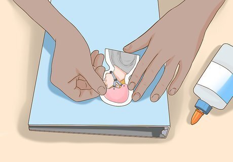 Secure the images. Once you know where you want everything placed, begin to stick each piece down. A small dab of school glue or a rub from a glue stick usually works well. You can glue the images to your paper-covered binder or, if you don't mind ruining your binder, directly to the binder itself. Test the first couple of pieces to make sure the glue you are using holds firm. On the other hand, if your binder has clear plastic sleeves on the outside, you can just glue your collage to a piece of paper and slide it into the sleeve.