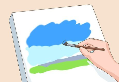 Paint your binder cover. Painting takes a little more deliberate effort than drawing or doodling, but the colorful results can be amazing (especially if you're willing to take your time). However, if you want to avoid the paint leaking through your cover to your binder, strongly consider taking the cover off first and painting it over a protective surface, like newspaper. Most basic acrylic and watercolor paints should work well on paper covers. Fabric, on the other hand, may require special fabric paints or even puff paints. Check your paint's label before using it to make sure it's suitable for use on fabric. For best results, your fabric should be a tight weave, so that the paint doesn't bleed through. Cotton is an excellent choice, though you can experiment with other tight-weave fabrics like rayon or silk.