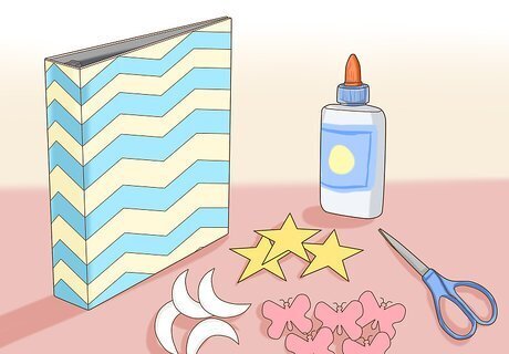 Bedazzle your binder. Even if your binder contains boring history or math homework, it doesn't mean that the outside of it can't be fun and fabulous. Glue on rhinestones or sequins for a binder that sparkles.