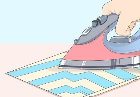 Iron the paper or fabric if necessary. While you certainly don't have to, you may like the look of neatly ironed paper or fabric. If you are ironing fabric, simply choose the correct heat setting as indicated on your iron. If you're ironing paper, you'll need to take a couple of extra steps: Begin by lightly misting the wrinkled paper with water from a spray bottle. Place a hand towel on your ironing board, place the paper on top, and then place another hand towel over the dampened paper. On a low-heat setting, iron the paper through the towel, checking every so often to see if the wrinkles are being worked out.