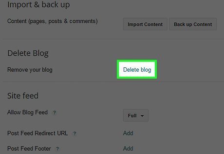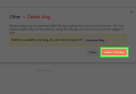 Click on Delete Blog. It's on the right side of the screen, in the second section of options. If you want to save a copy of your blog, click Download Blog in the dialog box that pops up.