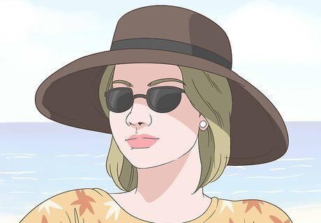 Wear a hat and sunglasses to protect your face and eyes. A hat can keep your face shaded and reduce your skin’s exposure to sunlight. In addition, a pair of sunglasses can provide additional protection for the skin around your eyes. Before you head outside, put on a hat and sunglasses to make sure you’re covered. Choose a pair of sunglasses that are polarized for the best protection against UV radiation. Wear a hat that has a large brim like a baseball cap or a sun hat so your face is covered by shade.