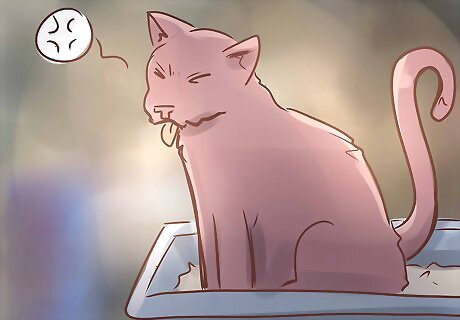 Check for poop outside the litter box. If your cat has IBD, pooping outside of the litter box may be the first symptom you notice. Because IBD commonly causes diarrhea, your cat may not make it to the litter box each time it needs to poop. Don’t punish your cat if you see poop outside of the litter box. Clean it up without making a fuss.