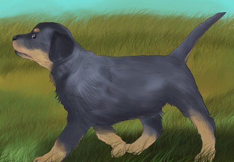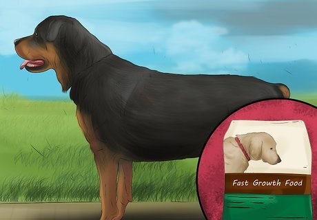 Feed your dog large breed growth food. Another risk factor is a Rottweiler puppy who grows too quickly. Fast growth forces your dog’s bones to grow too quickly and can put stress on your dog’s joints. Dogs that will weigh more than 25kg as adults, such as Rottweiler puppies, should be feed large breed growth food. This type of food contains a sufficient amount of calcium for a larger dog, which will not force his bones to grow too fast. Regular growth food can provide too much calcium, which may then force your dog’s bones to grow too rapidly.
