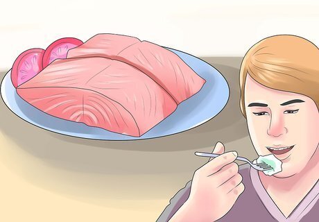 Consume more lean protein. Your body needs protein to build muscle, provide immunity protection and keep your metabolism on track. To get the benefits with none of the detriments that can be associated with protein sources, choose foods that are high in protein and low in fat. Be a fat detective. Pick skim milk rather than whole milk, lean ground beef or ground turkey rather than marbleized ground beef. Look for fat that's hidden--or not so hidden--in your protein choices. Avoid full-fat dairy products, organ meats such as liver, fatty and marbled meats, spareribs, cold cuts, hot dogs and sausages, bacon, fried or breaded meats and egg yolks. Become a fan of fish. Certain types of fish are rich in omega-3 fatty acids, which can lower blood fats called triglycerides. You'll find the highest amounts of omega-3 fatty acids in cold-water fish, such as salmon, mackerel and herring. Be one with beans. And peas and lentils--legumes in general are good sources of protein and contain no cholesterol and less fat than meat. Try a soy or bean burger in place of a hamburger or toss some tofu into a veggie stir-fry or salad.