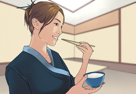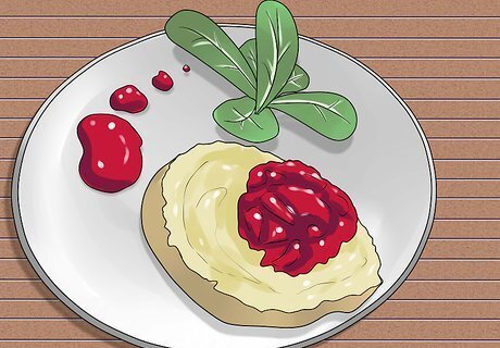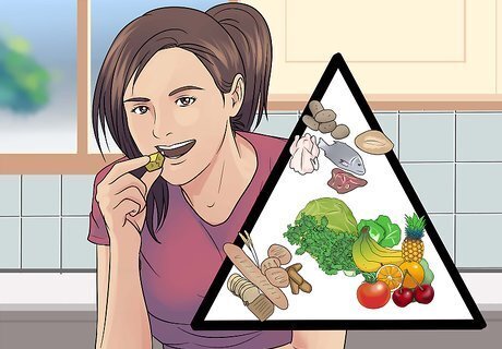 Follow dietary guidelines. The USDA has dietary recommendations to help ensure you get the proper amount of nutrients from your meals and eat a balanced diet. This means you are getting the proper amount of servings from each of the food groups without eating too much from any one group. You also want to vary the foods you eat in each group — don't only eat apples and no other fruits, for instance. Other key recommendations include: make less than 10% of your daily calories from added sugar; make less than 10% of your daily calories from saturated fats; and consume less than 2,300 mg of sodium daily. In addition, there are specific recommendations for the amounts of foods you should strive to eat every day. These are as follows: Eat nine servings of fruit and vegetables daily. One serving of fruit is equivalent to about 1 cup of chopped fruit or one small piece of fruit. One serving of vegetables is equivalent to 2 cups of loose, leafy greens, or about 1 cup of cut veggies. Eat six servings of grains per day and make at least half of those grains whole grain. One serving of grains is equivalent to one slice of bread or 1/2 cup of cooked rice or pasta. Eat two to three servings of dairy per day, but try to make it low-fat dairy. 1 cup of milk is the equivalent to one serving of dairy. Eat two to three servings of proteins daily. One serving of meat is 3 oz., or about the size of an adult's palm. One serving is also equal to one large egg, 1 tablespoon of peanut butter, 1 ounce of walnuts, and 1/4 cup of beans. Try to "eat the rainbow," meaning eat foods that are a variety of colors (blueberries, red apples, asparagus, etc.). Different colored foods mean you are getting different nutrients and vitamins.