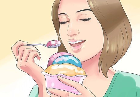 Treat yourself occasionally. Having a reward system in place can help keep your enthusiasm high while dieting and prevent you from going off track. Schedule a "cheat" day. Allow yourself one day a week when you can forget your dietary restrictions and eat whatever you want. It'll give you something to look forward to and keep you from feeling deprived. Be careful of labeling a food as "forbidden." Human nature makes us desire something we can't have even more. Avoid saying that you can "never" have a certain food on your diet plan. Allow for exceptions to reduce the allure of certain tasty treats.