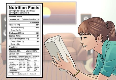 Read labels. Paying attention to the nutrition labels on food packages can help you make sure that you are making healthy choices. One of the most important parts of the label is the serving size information. This tells you how many servings are in each package, and what the nutrition facts are for each serving. You should also note how many calories are in each meal. Try to limit the following nutrients: trans fats, saturated fats, and sodium. These are not only linked to obesity, but also to heart disease and high blood pressure. Look for foods that have significant amounts of fiber, vitamin A, vitamin C, iron, vitamin D, and calcium. Your dietitian can help ensure you are getting all the nutrients you need and in the proper quantities.