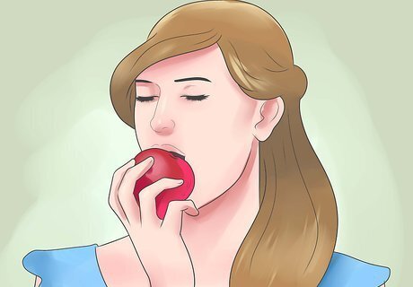 Snack. Good news! You actually need to snack while you're dieting. Eating frequently keeps your metabolism going and will help your body burn more calories throughout the day. Healthy snacks can also reduce hunger and keep you from overeating at meals. The key is to make sure that you are choosing healthy snacks. Reach for fresh fruits and veggies, nuts, or low-fat dairy. Try some cucumber slices with hummus for a satisfying afternoon snack. Keep healthy snacks handy in your desk at work. If you have some roasted almonds nearby, you'll be less likely to head for the cookies someone left in the break room.