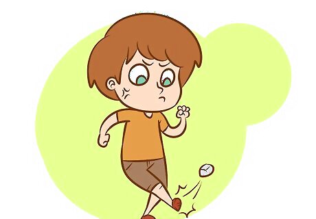 Change their line of thinking. If the tantrum is related to something that they think or feel, it may be possible to redirect the child by forcing them to think about something else. Manually guide their thought process by asking them questions and slowly move the questions away from what they were upset about, until eventually they forget what the original problem was. For example, if you see your child hit their elbow and a meltdown is on the way, ask if they hurt their toe. Their foot. Their hand. Their belly. Move from body part to body part that you know is not hurt, forcing them to think about the “not in pain” sensations in other parts of their body. Similarly, you can shift your child's attention to a new activity if they're upset about not doing what they want. Introduce the activity you want them to do, while also demonstrating it to them. You can also get their attention and encourage critical thinking by asking them questions about the activity, such as "What do you think?"