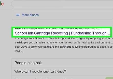 Contact your local school to see if they want your cartridges. Since schools tend to go through large quantities of toner, many states and countries offer cash rewards for schools that recycle their used ink and toner cartridges. Go online and search for the contact information for the schools around you. Call each school in your area to see if they’re interested in your used toner cartridges. If they are interested, drop it off at the school’s main office.Tip: If there’s a university near you, call them if the local elementary and high schools aren’t interested in your cartridges. Some states have a similar program with their local state-run schools.